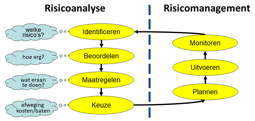 - de meest gangbare methodes om risico’s in projecten te identificeren, de ernst in te schatten en te beheersen;